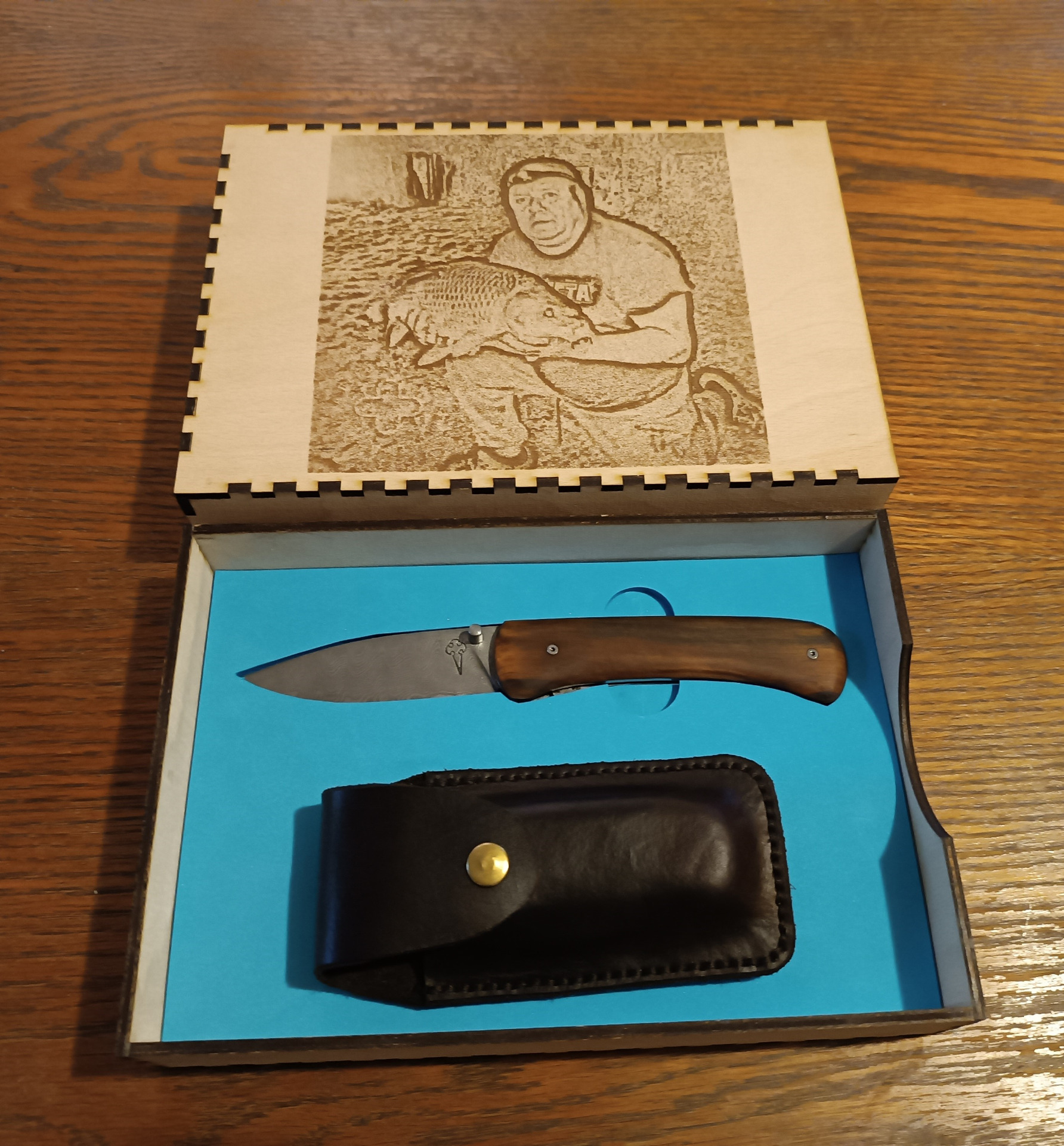 K vybraným nožům, vyrábíme dřevěné krabičky na míru, které lze po domluvě doplnit vygravírováním nápisu, znaku, loga a nebo fotografie